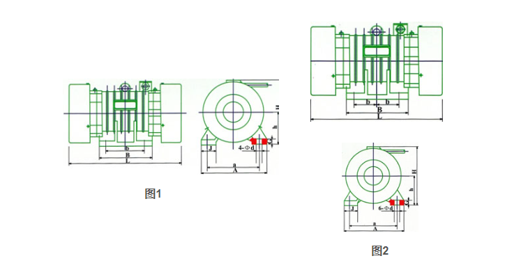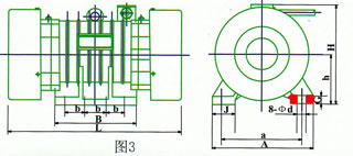 | 型號 | 激振力 KN | 額定功率 KW | 額定電流 A | 振動次數(shù) 次/分 | 安裝型式 | L | B | b | A | a | h | H | G | J | d | 圖 |