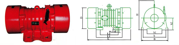 | 型號 | 激振力 X103N | 額定功率KW | 額定電流A | 振動次數(shù)次/分 | L | B | H | L1 | L2 | b | b1 | hi | h2 | D | n-Od |